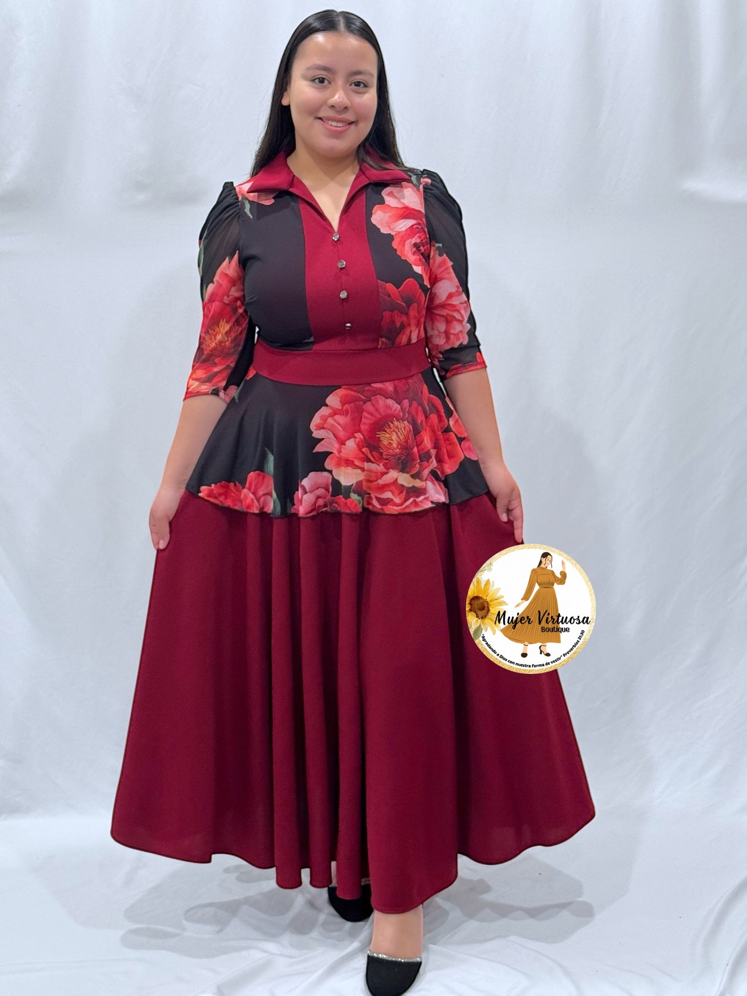 Analy Burgundy Roses Dress