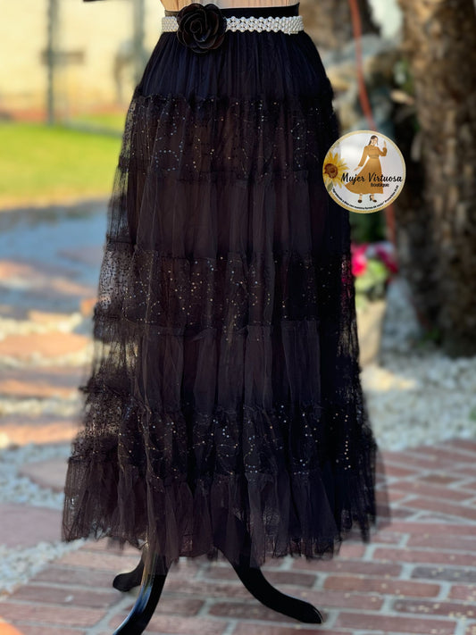 Sequined Black Tulle Skirt