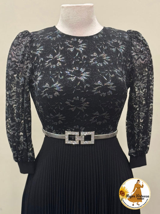 Ariana Black Lace Pleated Dress