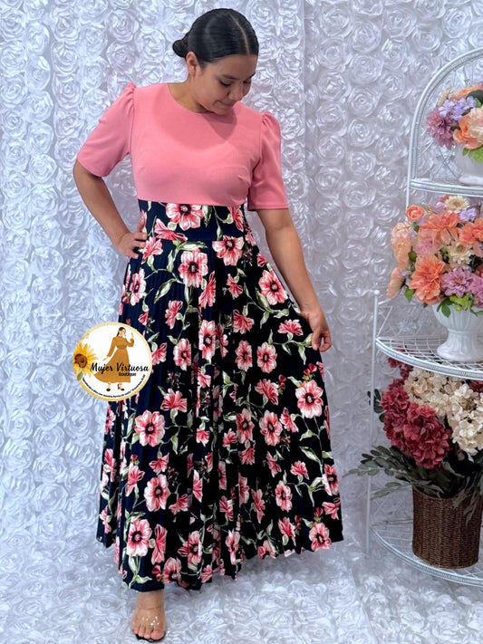 Rosalie Pink & Black Pleated Dress