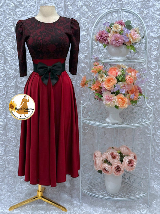 Lisa Burgundy Lace Top Dress