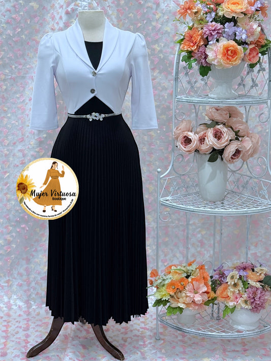 Milena White/Black Pleated Dress