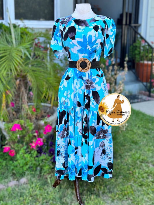 Abigail Blue Three Tier Dress