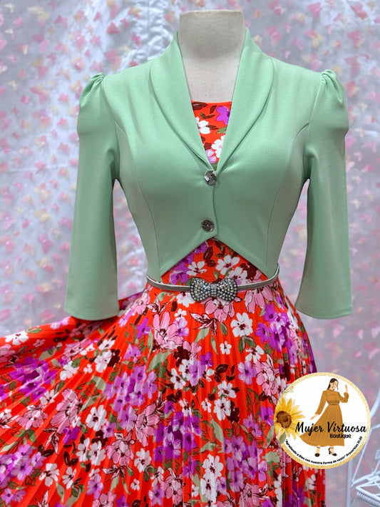 Milena Pistacho/Orange Pleated Dress