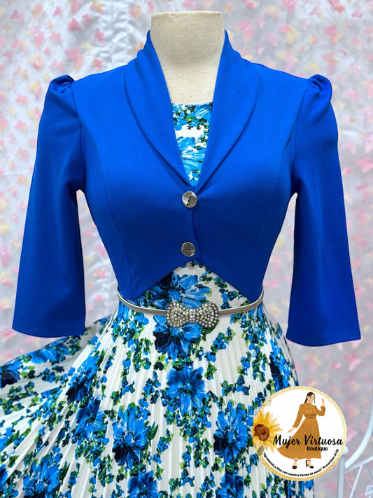 Susan Royal Blue/White Floral Dress