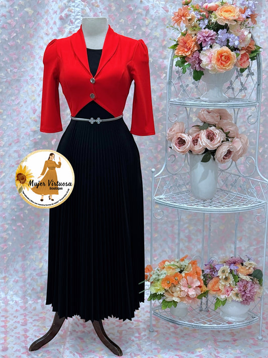 Milena Red & Black Pleated Dress