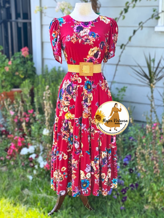 Abigail Wine Three Tier Dress