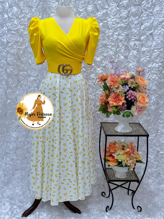 Susan Yellow/White Floral Dress