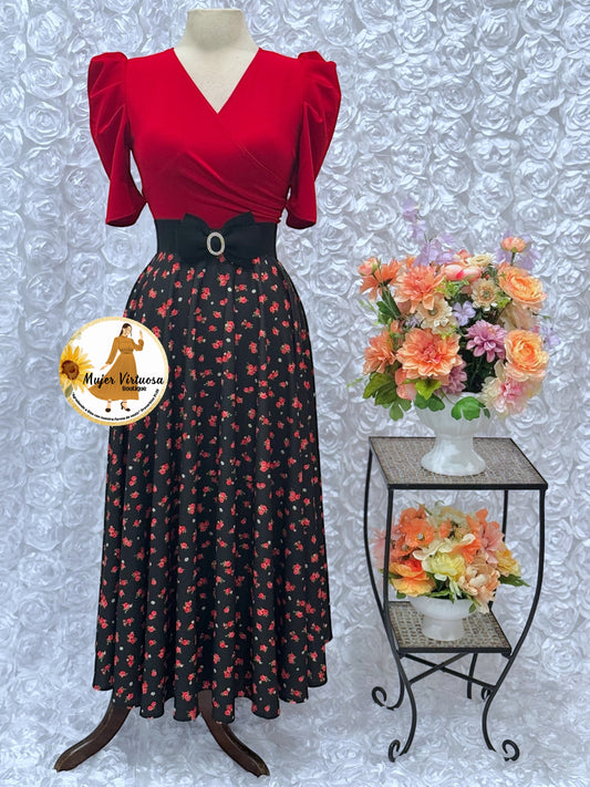 Susan Red & Black Ditsy Dress