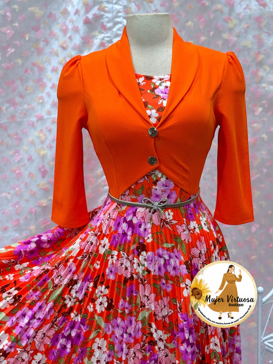 Milena All Orange Pleated Dress