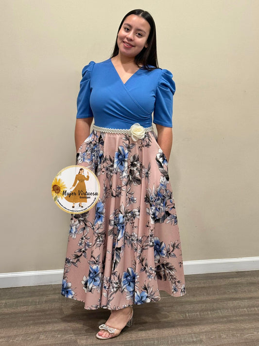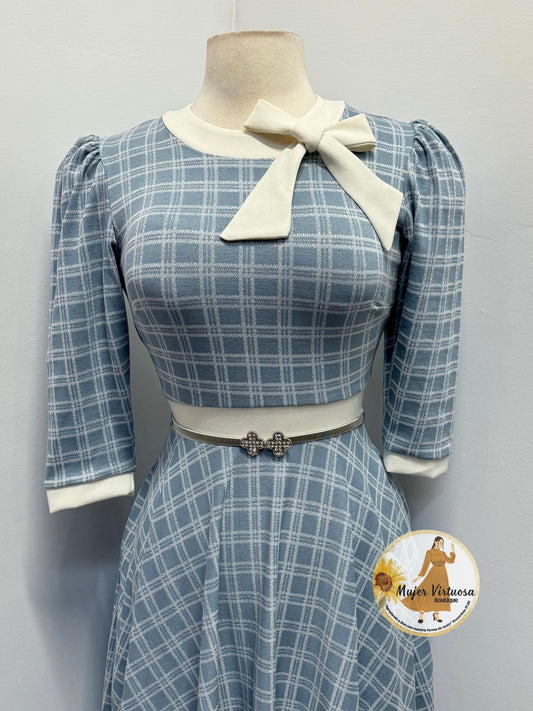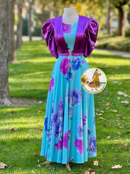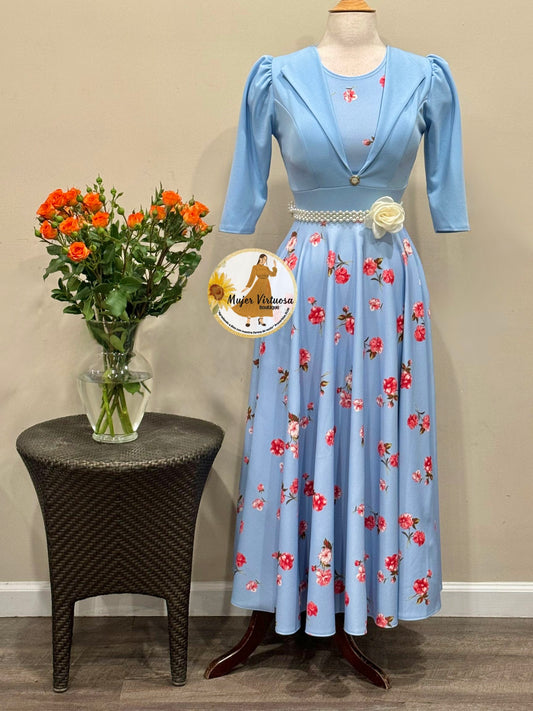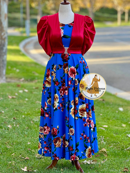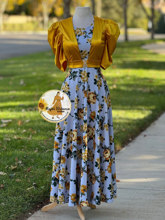 Saori Baby Blue & Mustard Satin Blazer Dress