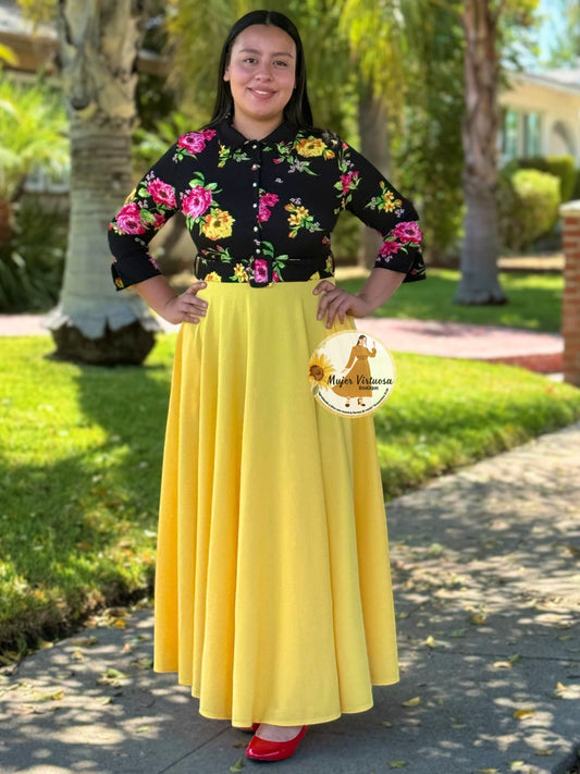 Hadassah Yellow Belted Floral Dress