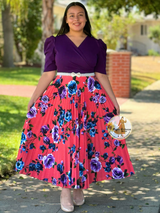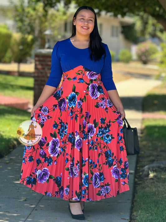 Cristel Royal Floral Pleated Dress