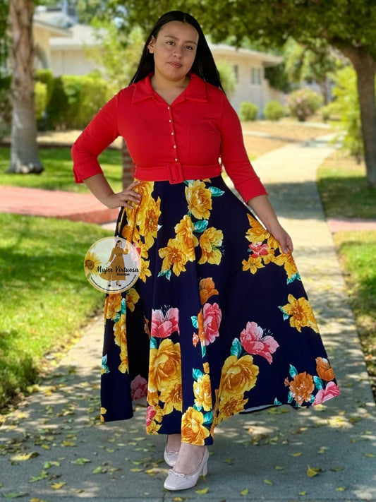 Hadassah Royal & Black Belted Floral Dress