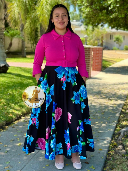Hadassah Fucsia Belted Floral Dress