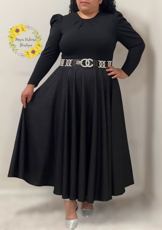 Eloisa Black & Silver Glitter Dress