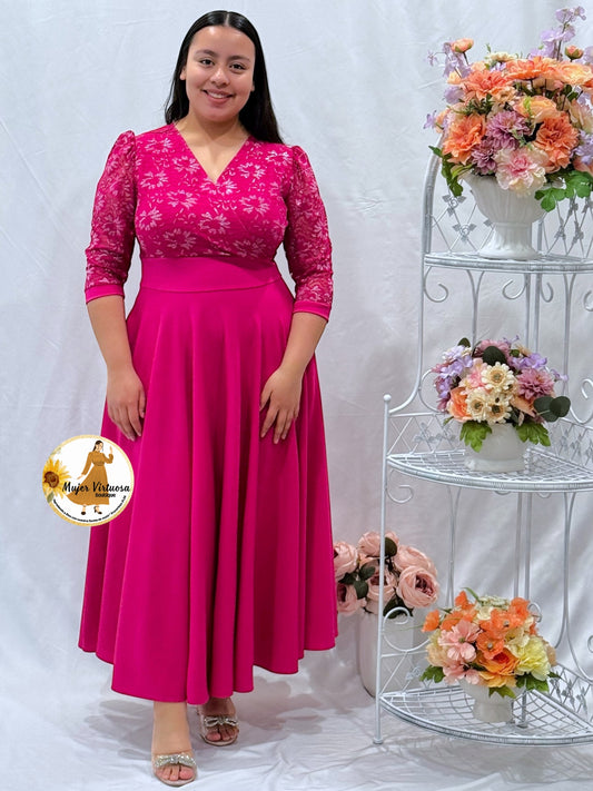 Débora Fucsia Lace & Crepe Dress
