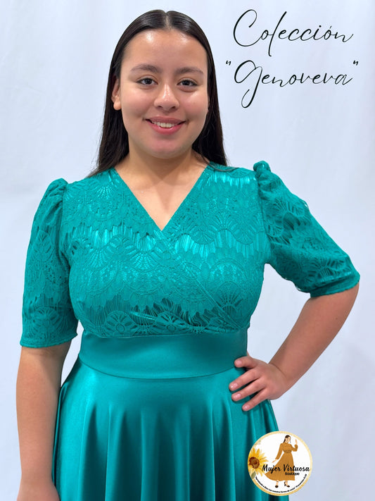 Genoveva Turquesa Lace & Satin Dress