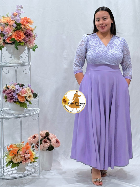 Débora Lilac Lace & Crepe Dress