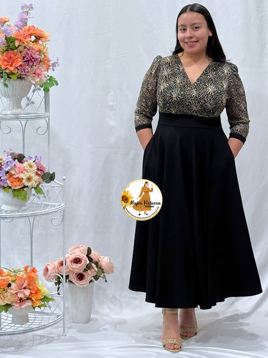 Jasmine Black Dress con Paletones