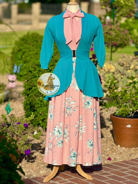 Teal Floral Midi Skirt