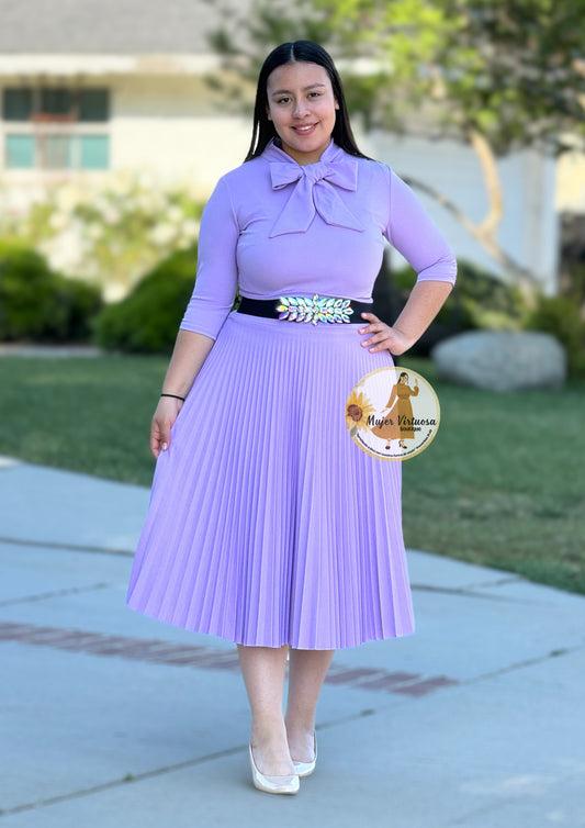 Lilac Pleated Midi Skirt