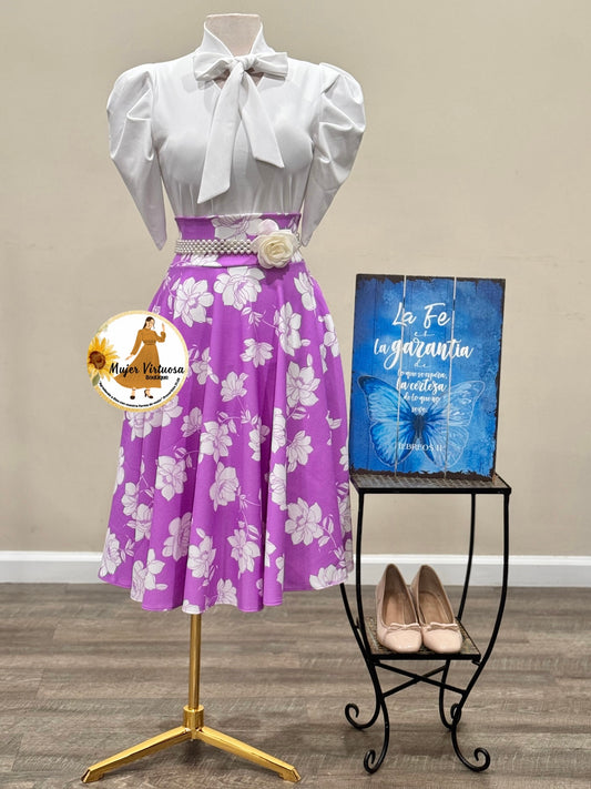 Lavender Floral Midi Skirt
