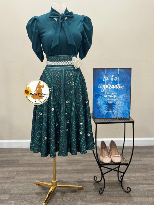Hunter Green Floral Midi Skirt