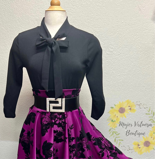 Blusa Negra de Corbata (Moño)