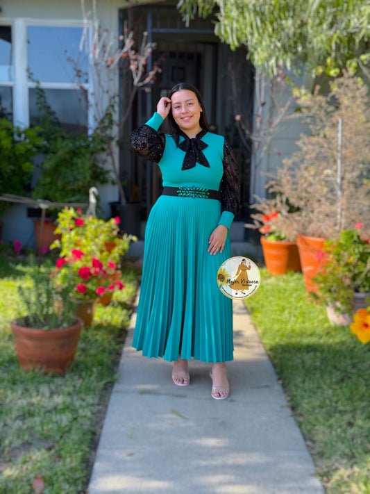 Arely Emerald Pleated Dress
