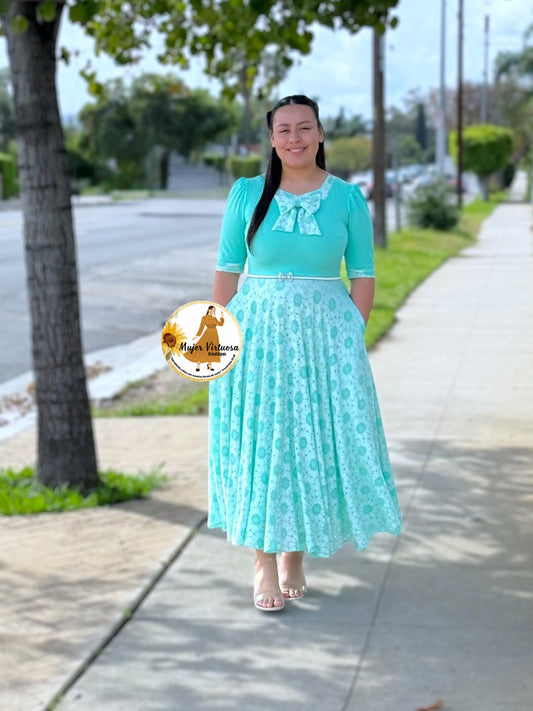 Madelyn Turquesa Mesh Bow Dress