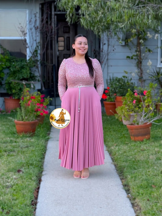 Arely Pink Pleated Dress