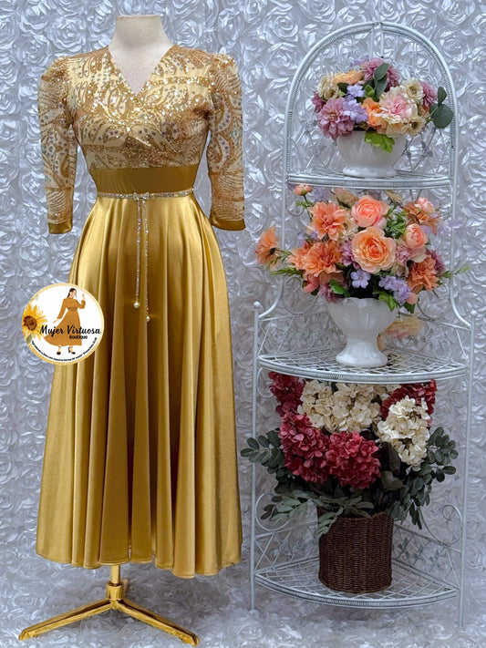 Cecilia Gold Satin Dress