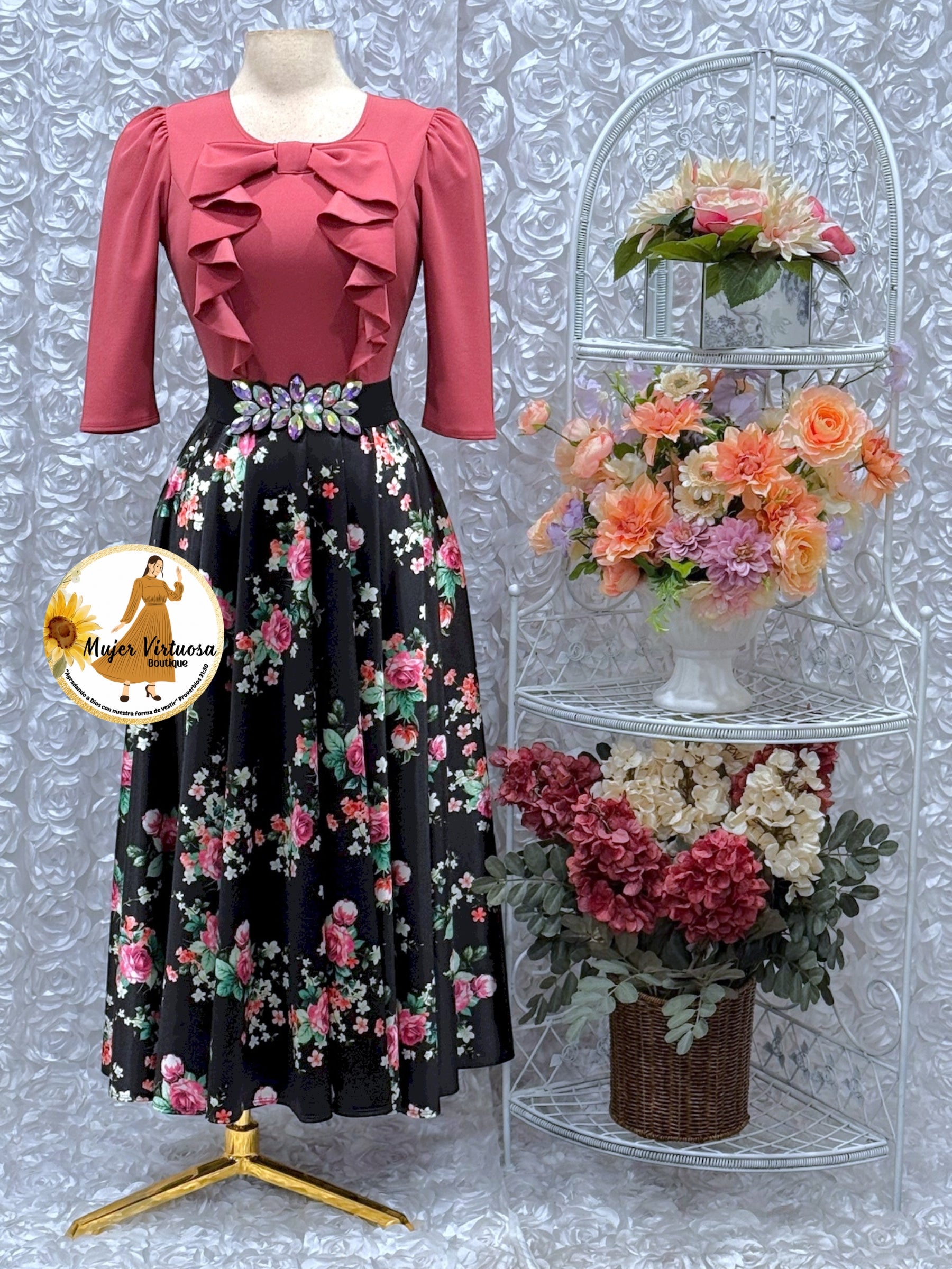 -Fabric: 96% Polyester & 4% Spandex (Crepé y Satin)