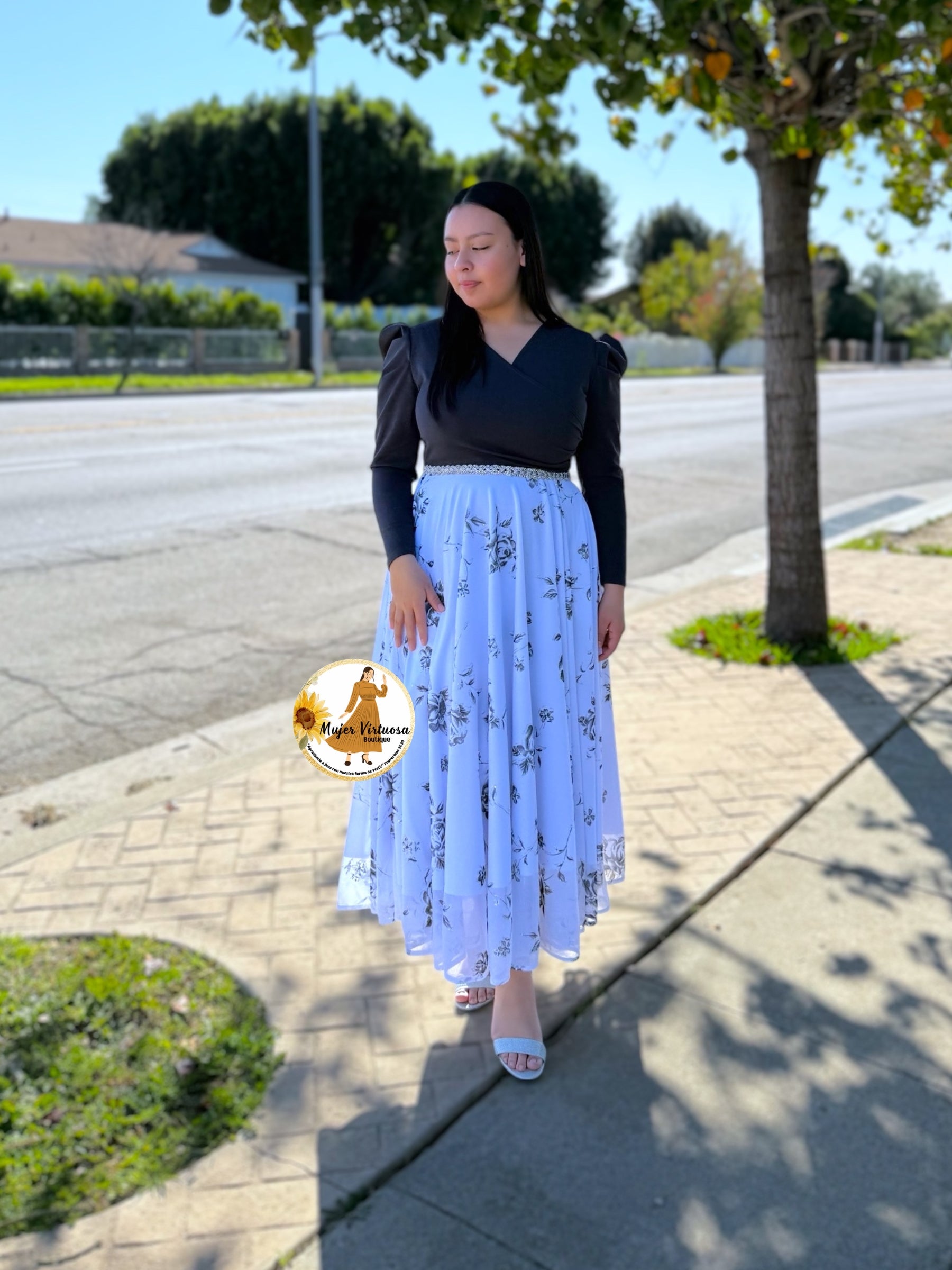 -Tela de la falda es mesh y tela de la blusa es crepe!