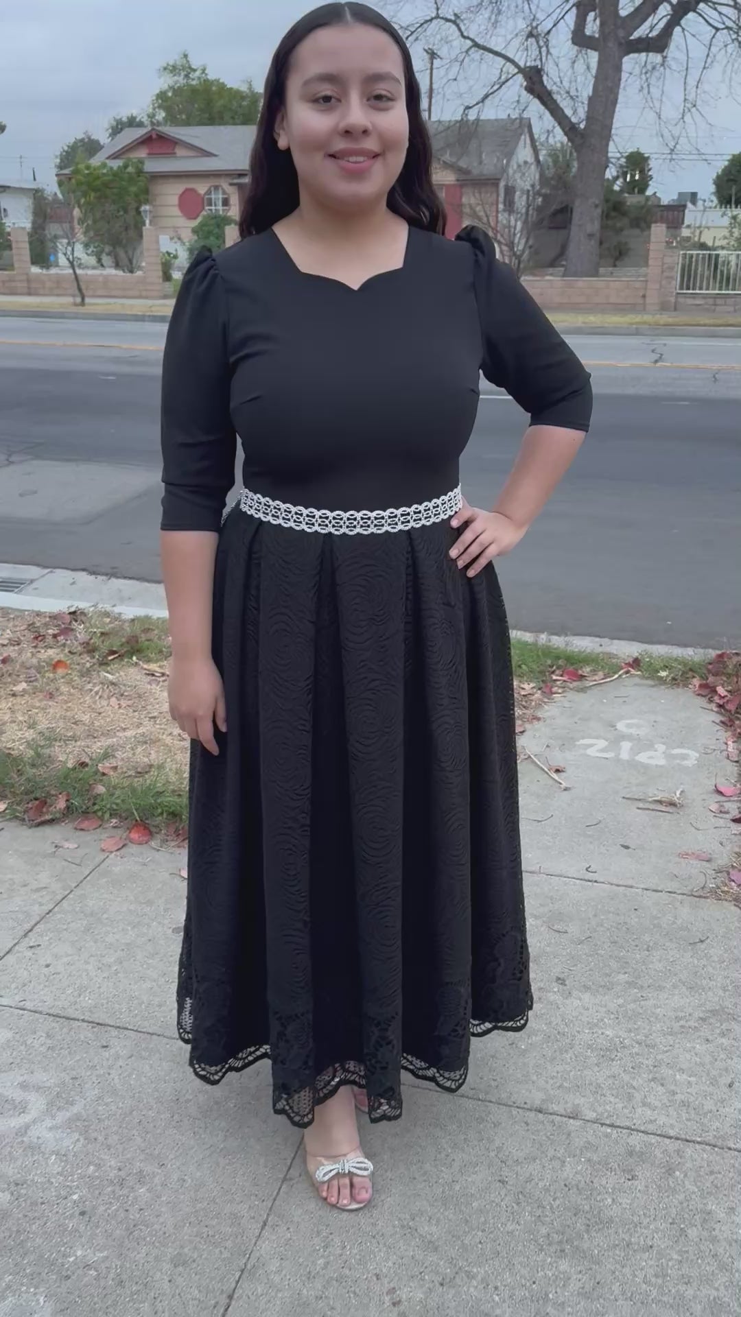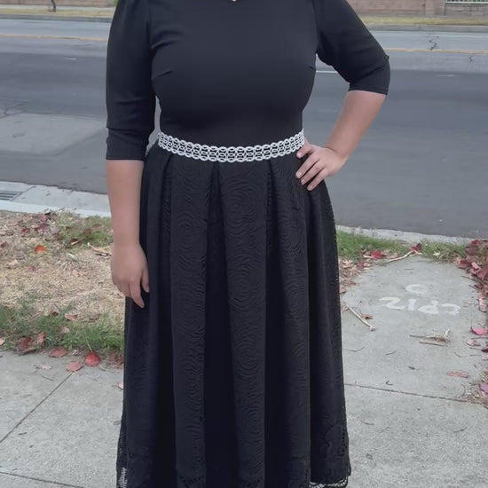 Romina All Black Lace Pleated Dress